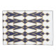 Dieser Kissenkoffer hat einen kunstvollen Deko-Design aus Dreiecken und Diamanten, die wie Kissen in Blau und Gold aussehen.