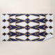 Dieses Badetuch hat ein Art Deko-Design von Dreiecken und Diamanten, die wie Kleider in blau und gold aussehen.
