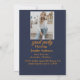 Celebrate your graduate’s big achievement with this elegant blue and gold starry graduation party invitation. Featuring a customizable photo of the graduate framed by shimmering golden stars, this design blends sophistication with festive charm. Personalize the back with event details—name, date, location, and RSVP—to create a keepsake that guests will treasure. Perfect for high school, college, or any milestone graduation, this invitation sets the tone for a night of joy and accomplishment.
