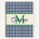 This monogrammed notebook features a blue and cream gingham plaid tartan with an accent of green. Personalize the matching blue and green monogram on the front with your choice of name and initial and your choice of text on the back. Perfect for party favors and back to school.