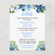 This beautiful and elegant wedding details card can be customized with important information for your guests such as wedding reception, hotel accommodation, transportation, directions, dress attire, itinerary, registry and more. The design features watercolor baby blue and navy blue flowers with foliage. The text combines handwritten script and serif fonts for a stylish and modern look. This is perfect for a spring or summer rustic wedding.