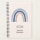 Jährlicher Planer mit einem niedlichen und skurrilen Regenbogen. Blau und pfirsichfarben.