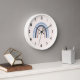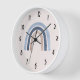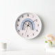 Eine Uhr mit einem niedlichen und skurrilen Regenbogen. Blau und pfirsichfarben.