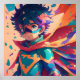 Blauer und roter Superheld-Anime-Kind mit Cape Wall Art.