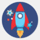 Blue und Red Rocket Outer Space Stickers. Ideal für Geburtstagsparty Gunst Circle Stickers, um Ihre Papiertassen, Kuchen Toppers und mehr zu dekorieren! In der Marine, blau, orange, gelb, grün und rot. Rot und Blau.