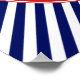 Ein wunderschönes, nautisches Design mit einer weißen SegelbootSilhouette, die einen blauen Anker in einem roten Rahmen hat, auf einem Hintergrund von navy blauen diagonalen Streifen.