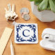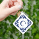 Blue and White Blue Scroll Frame Monogram Schlüsselanhänger