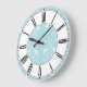 A pretty blue and white damask pattern with a roman numeral clock face.