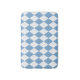 Stylish argyle pattern blue and white bath mat. This is a modern take on the retro golf pattern, with a weathered speckled effect, to look like it's aged.