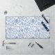 Brighten up your workday with this playful, sophisticated, simple and modern desk mat. Light dusty French country blue boho block print flower and leaf pattern overlays a white background. A great way to accessorize your living space to a new, heightened look.