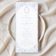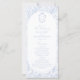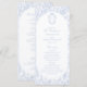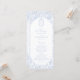 This soft Delft blue floral wedding program is designed in a refined blend of chinoiserie and French toile de Jouy style. Delicate botanical illustrations frame an elegant oval arch layout, creating a timeless and romantic presentation. The program includes space for the ceremony order, wedding party details, and a thoughtful thank you message, making it both beautiful and practical for your special day.