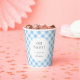 Die Details machen die Veranstaltung und diese karierten, blauen und weißen Gingham gemusterten Papiertassen werden die Babyduschgäste und die Mutter sicher beeindrucken, damit Sie wirklich von allem denken.