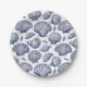 Teller zum Thema Strandhauer mit Muscheln, Jakobsmuscheln und Muscheln in Blau und Weiß für die Küste, nautische Dekoration.