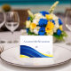 Blue and Yellow Wedding Place Cards Pork Icon Tischnummer
