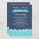 Diese wunderschönen Hochzeitsfeiern zeigen das Meer und die Wellen in Blau. Ein elegantes und modernes Design, das sich perfekt für Hochzeiten, Hochzeiten im Wassersport und Hochzeiten in Urlaubsort eignet. Sie können die Textfelder des Beispiels nach Ihren Wünschen anpassen. Weitere passende Einladungen sind ebenfalls verfügbar.