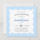Unser Blue Baby Shower Foto Invitation ist eine großartige Möglichkeit, die großen Neuigkeiten zu teilen und Freunde und Familie zum Duschen Ihres Babys einzuladen. Der niedliche Rippelrahmen fügt einen einzigartigen Flair hinzu. Mit Platz für die Geburtsdaten Ihres Babys und einem Foto auf der gestreiften Rückseite. Anfragen? E-Mail: bestdressedbread@gmail.com