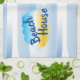 Das individuell gestaltete Teetuch im Blue Beach House ist mit Sandbuckel und Beachball ausgestattet.