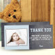 Niedliche Geburtstag danke Ihnen Karte, um Ihren Gästen zu danken. Personalisieren Sie die Karte mit Ihrem Foto und Namen. Sie können auch den Dankeschön-Text ändern und Ihre eigenen schreiben. Der Text ist in Blau und Weiß. Der Hintergrund ist eine moderne graue Kalkpappenstruktur und pastellblau.