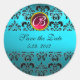 BLUE BLACK DAMASK MONOGRAM, rot ruby turquase Runder Aufkleber