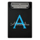 Blue Black Script Giron Monogram Name Mini Klemmbrett