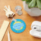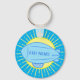 Niedlicher Cartoon Stil blauen Blimp zeichnend. Hellgelbe Sonne im Hintergrund. Benutzerdefinierte Schlüsselanhänger. Bearbeiten Sie den Namen auf der Ballon, um ihn anzupassen. Geschenkidee.