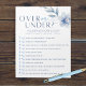 Blue Over oder Under Shower Game Pack Notepad. Enthält 40 leicht zerreißende Blätter. Lassen Sie Ihre Gäste erraten, ob die Aussagen vorbei sind, unter oder durch Umkreuzen ihrer Antwort. Mit wunderschönen Aquarellblau blühenden Blume. Teil unserer Brautparty-Kollektion "etwas Blau vor mir". Karo jetzt mit anderen passenden Spielen im Shop!