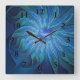 Blue Blume Fantasy Pattern, Abstraktes Fraktal Art Quadratische Wanduhr
