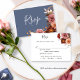 Elégante carte RSVP bleu poussiéreuse avec rose rousse, ivoire, pêche, or rose bordeaux et rose couleur aquarelle poussiéreuse détails floraux à l'avant et à l'arrière. Elégant arrière - plan bleu poussiéreux à l'avant. Possibilité d'ajouter des options de repas ou de les supprimer. Une partie de notre collection de mariages et événements "Ciel en Rose fleuri et bleu Dusty".