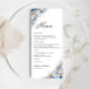 Blue Boho Floral Mariage Cérémonie Menu