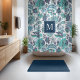 Blue Boho Vintag Floral Monogramm Duschvorhang