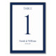 Eine klassische marineblau-weiße Hochzeitskarte, die mit jeder Tischnummer angepasst werden kann. Die Grafik erscheint auf beiden Seiten dieser Karte.
