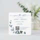 Blue Botanical Leaf Save the Date w/QR Code+Image Einladung