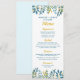 Blue Botanical Wedding Dinner Menu Card Einladung
