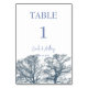 Blue Bottom Trees Tropical Boho Hochzeit Tischnummer