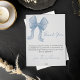 Mit diesen Blue Bow Baby Shower Dankeschön Cards zeigen Sie Ihre Wertschätzung stilvoll. Diese Karten mit einem zauberhaften blauen Bogen-Design sind ideal, um Ihren Gästen Dankbarkeit zu bekunden. Mit ihrem eleganten und einfachen Design ergänzen sie jedes Baby Duschfest mit Bedacht.
