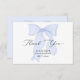 Mit dieser Blue Bow Baby Shower Dankeschön Card zeigen Sie Ihre Wertschätzung stilvoll! Mit seinem zarten Bogen-Design und den sanften Pastelltönen ist diese Karte der perfekte Weg, um Ihren Gästen zu danken, dass sie mit Ihnen gefeiert haben.