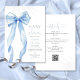 Diese hübsche Babydusche lädt mit einem eleganten blauen Bogen und stilvoller Typografie ein. Mit dem QR-Code der Registrierung und den Ereignisdetails auf der Rückseite. Entwickelt von Thisisnotme©