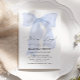 Célébrez l'arrivée prochaine d'un bébé avec cette invitation à Baby shower Blue Bow! Avec son arc magnifiquement illustré, ses teintes pastel douces et sa typographie élégante, ce design intemporel donne le ton parfait pour une célébration sophistiquée et mémorable. Personnalisez-le avec vos détails d'événement pour une touche unique !