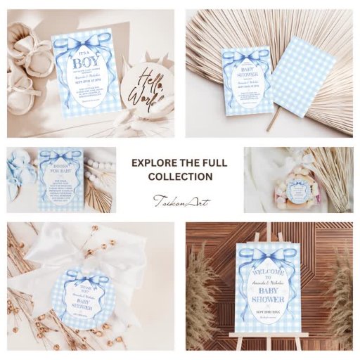 Watercolor Blue Gingham Baby Boy Designt von Tsikona M