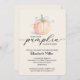 Ein niedlicher Kürbis, der mit einem blauen Band gefesselt ist, hebt diese jungen Duschbäder hervor, die in Elfenbein mit "Ein kleiner Kürbis ist auf dem Weg" und den Details in schicken Schriftzeichen einladen. (Auch in Rosa und Elfenbein erhältlich.) PASSENDE Artikel in unserer Sammlung.