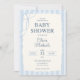 The minimalist layout and classic typography add a refined touch, while the soft blue tones make it ideal for a baby boy shower or a gender-neutral celebration. The airy background allows the bow to shine as the centerpiece, giving the invitation a modern yet timeless aesthetic.