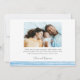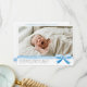 This baby boy birth announcement card features a sweet newborn photo accented with a soft blue ribbon bow and delicate stripe detail. The clean layout highlights your baby’s name and birth details while keeping the focus on the photo. A timeless design that feels classic yet fresh, perfect for sharing the happy news with family and friends. The back includes space for a photo and a heartfelt thank you message from the parents.