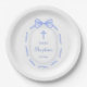 Blue Bow Ribbon Frame Taufe Pappteller