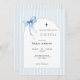 Blue Bow Striped Baptism Invitation for Boys