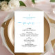 Elegantes Baby Boy Baptism Menu feiert die Taufe Ihres Babys mit unserem bezaubernden Baby Boy Baptism Menu, mit eleganten blauen Schriftzeichen und einem zarten blauen Kreuz. Dieses Menü fügt Ihrer Feier eine Touch von Anmut und Raffinesse hinzu, die den perfekten Ton für diesen besondere Anlass bildet. Egal ob Sie ein formelles Sit-down-Dinner oder ein lässiges Buffet-Menü beherbergen, unser Baby Boy Baptism Menu fügt Ihrer Tischdekoration eine wunderschöne Touch hinzu und steigert das Ambiente Ihres Festes. Es ist der perfekte Weg, die Taufe Ihres Babys zu ehren und dauerhafte Erinnerungen mit Familie und Freunden zu schaffen.