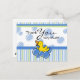 Blue Bubble Ducky Baby Shower Danke Postcards Adorable Baby Dusche danke Ihnen Noten mit glücklichen kleinen Ente mit blauen Bläschen und gestreiften Hintergrund Akzente. Personalisierter Text. Großartiges Duschgeschenk! Coordinierte Aufkleber, Babydusche, Briefmarke und Keepake Buttons sind ebenfalls im PinkInkArt Original erhältlich!