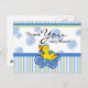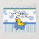 Blue Bubble Ducky Baby shower Merci Cartes postales baby shower adorable merci notes avec heureux petit canard avec des bulles bleues et des accents arrière - plans rayés. Texte personnalisé. Super cadeau douche ! Autocollants coordonnés, invitations à la douche pour bébé, timbres-poste et boutons de conservation également disponible PinkInkArt original!