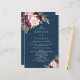 Das Design zeichnet sich durch einen eleganten, dunkelblauen Hintergrund mit einem Aquarellbouquet oder Kranz in den Farben Bordeaux, Marsala, hellblütenrosa, Pfirsich und mehr über die grünen Elemente Eukalyptus und Vintage vergoldete Blätter aus. Sie können Text unter den Tools zum Anpassen verschieben, hinzufügen oder löschen, wenn Sie mit dieser grafischen Vorlage eine eigene Textvorlage erstellen möchten.