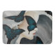 Ein Seitenprofil einer Frau mit weißem Haar und einem blauen Schmetterlingsmaskerat mit blauen Schmetterlingen.