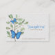Butterfly Doppelseitiger Visitenkarte. Der Hintergrund wirkt mit der Dekoration von Schmetterlingsbildern in Aquarelltönen etwas verklammert.